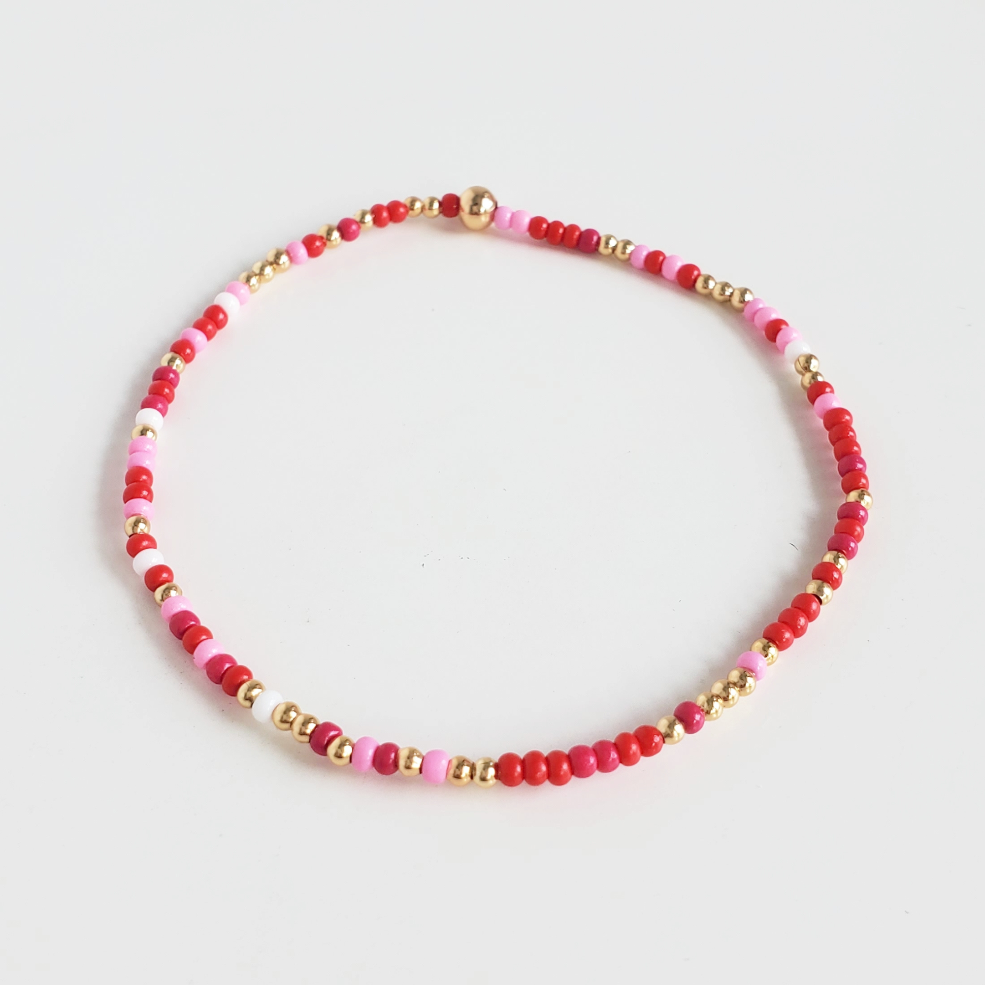 We added a pop of colour to my Classic gold bead bracelet and it is the perfect addition to a dainty stack. The beads are strung on a premium stretch cord.